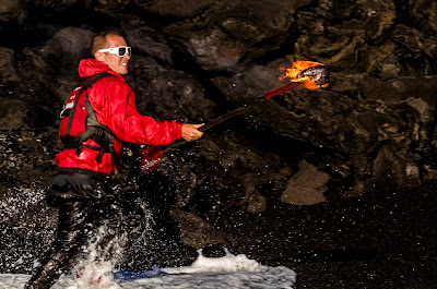 Mendayung perahu di antara lelehan lava berikut ini pastinya tidak akan pernah Anda bayangkan untuk Anda lakukan. Aksi menantang bahaya ini dilakukan oleh Pedro Olivia, Chris Korbulic dan Ben Stookesberry dari Brazil yang mengarungi perairan di sekitar lelehan lava merah yang mengalir dari gunung berapi Kilauea, kepulauan Hawaii.